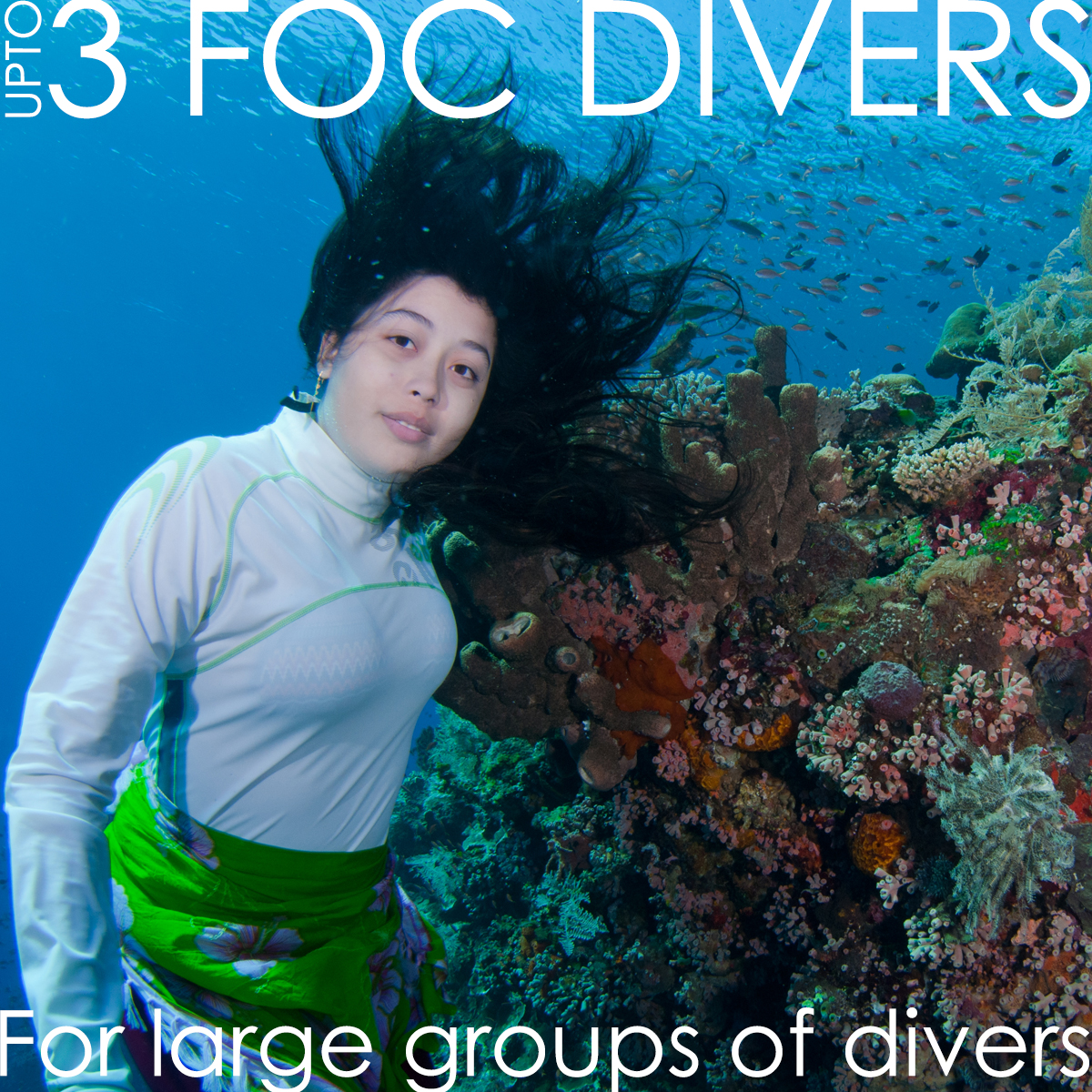 IF YOUR GROUP IS MINIMAL 7 (SEVEN) DIVERS THEN YOU AND YOUR GROUP ARE ENTITLED TO SPECIALS THAT MAY INCLUDE DISCOUNTED PRICES, FOC DIVE PACKAGES, FREE T-SHIRTS, FREE CULTURAL PERFORMANCES, VILLAGE AND DUGONG TOURS.